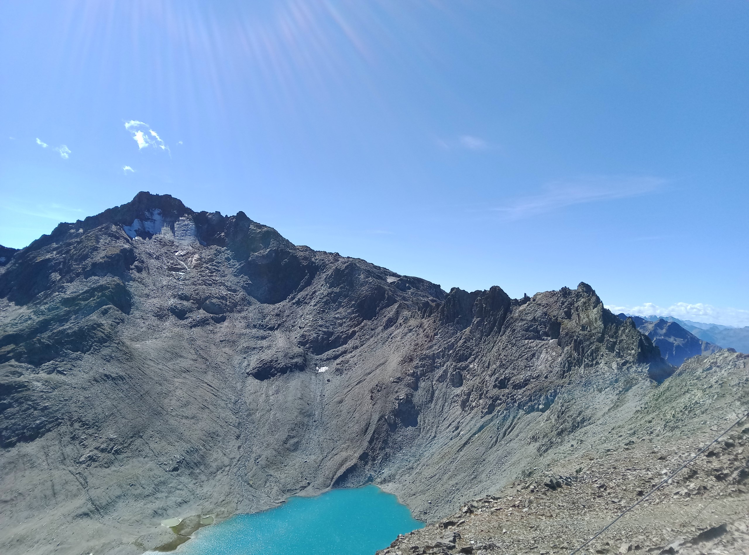 Von diesem kann in wenigen Minuten die etwas östlich gelegene Krachenspitze erreicht werden. Der Weg zum 2686m hohen Gipfel ist einfach und bietet schöne Tiefblicke auf die beiden Kaltenbergseen sowie Aussicht auf den gegenüberliegenden Kaltenberg.