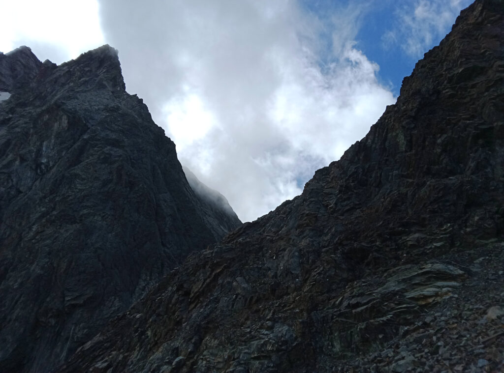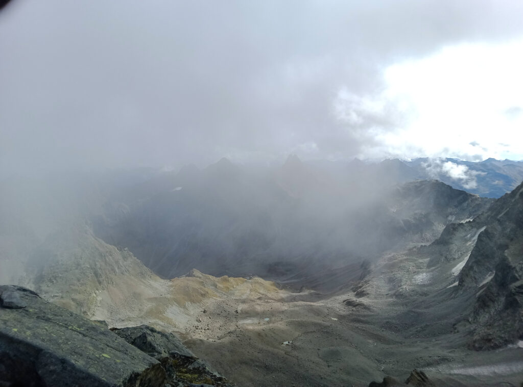 Über das Geröll wird schließlich ohne größere Schwierigkeiten das Kuchenjoch erreicht, welches den Übergang zur Darmstädter Hütte bildet. Von hier bietet sich die Besteigung des Scheiblers an, welche ich aufgrund des kalten Winds auch direkt angehe, während die anderen erst noch im Joch Pause machen.