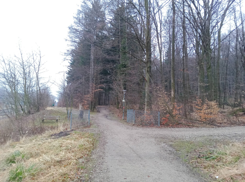Beim nun folgenden Abstieg zum Ort Hochstraß auf 577m kommt dann so langsam die Sonne etwas durch. Nach dem Ort wird die doch etwas überraschend auftauchende Autobahn A21 überquert, dieser für kurze Zeit Richtung Süden gefolgt und schließlich zum Hasenriegel aufgestiegen.
