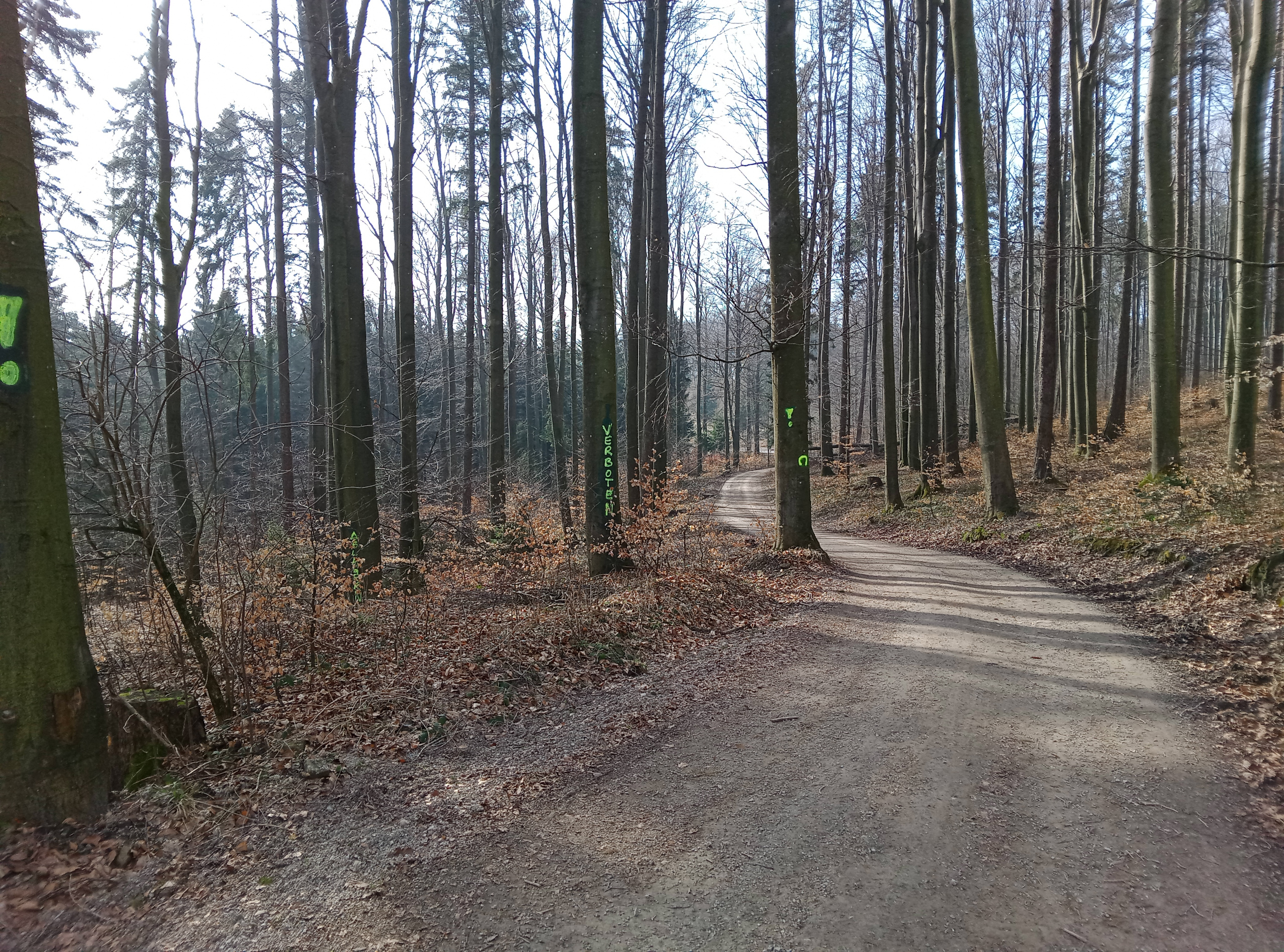 Auf demselben Weg geht es zurück zu der Quelle, wo ich beschließe auch den anderen Weg, den Johann-Marsam-Steig, mal auszuprobieren. Dieser ist deutlich weniger steil und führt in einer großen Schleife nach unten, wo er sich bei dem Pferdehof wieder mit der Alternativroute vereinigt.