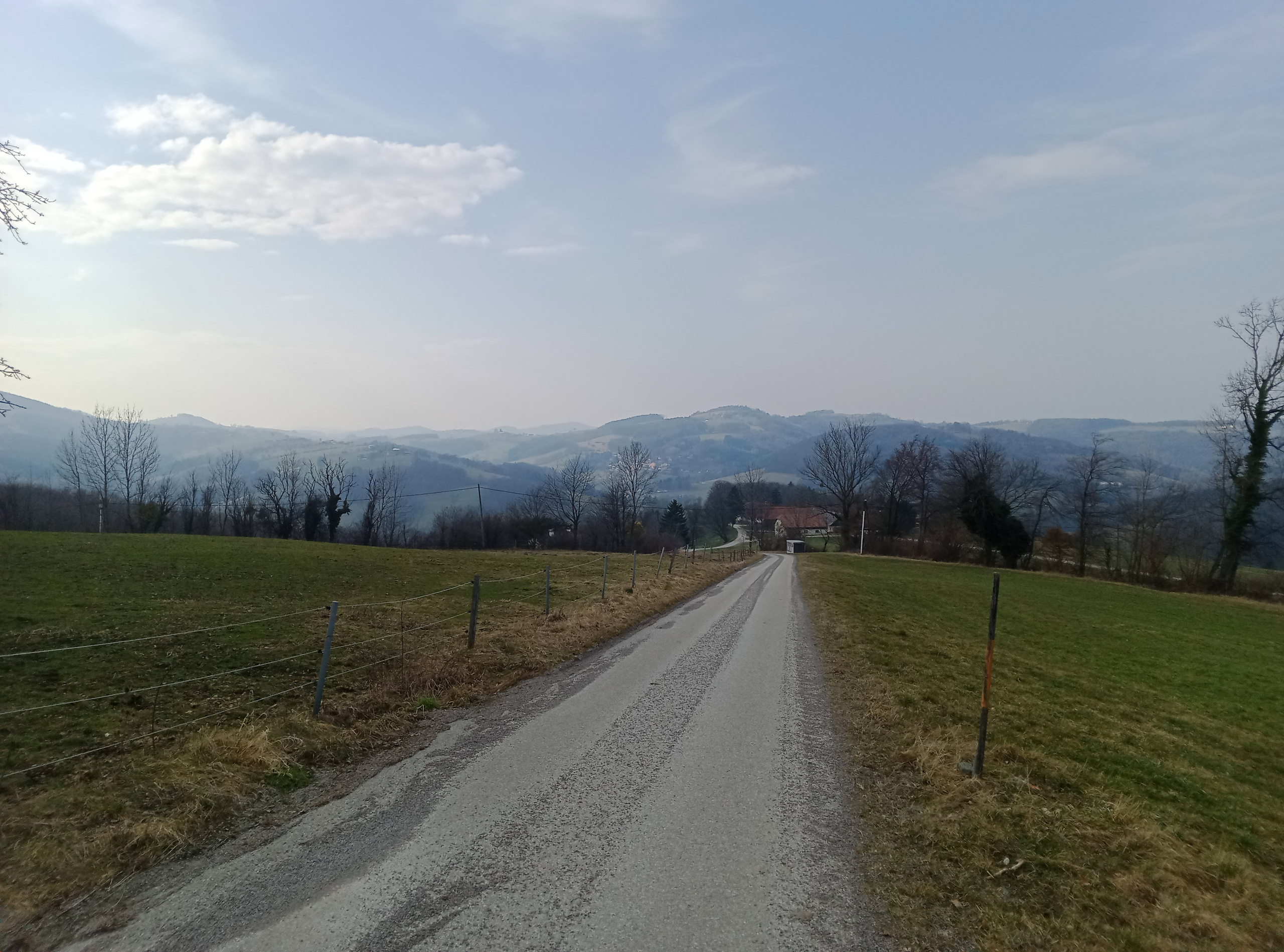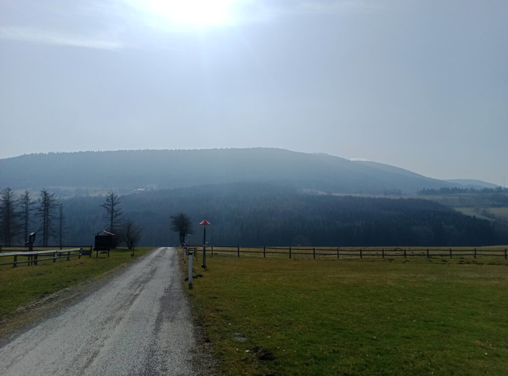 Von der Hütte führt der Weg mit nur wenig Höhenverlust zum großen (aktuell auch geschlossenen) Gasthaus Stegermaier und dem daneben liegenden Golfplatz. Vom Gasthaus geht es nun über Wiesen steiler abwärts zur Straße, welcher bis zum nahen Forsthof gefolgt wird.