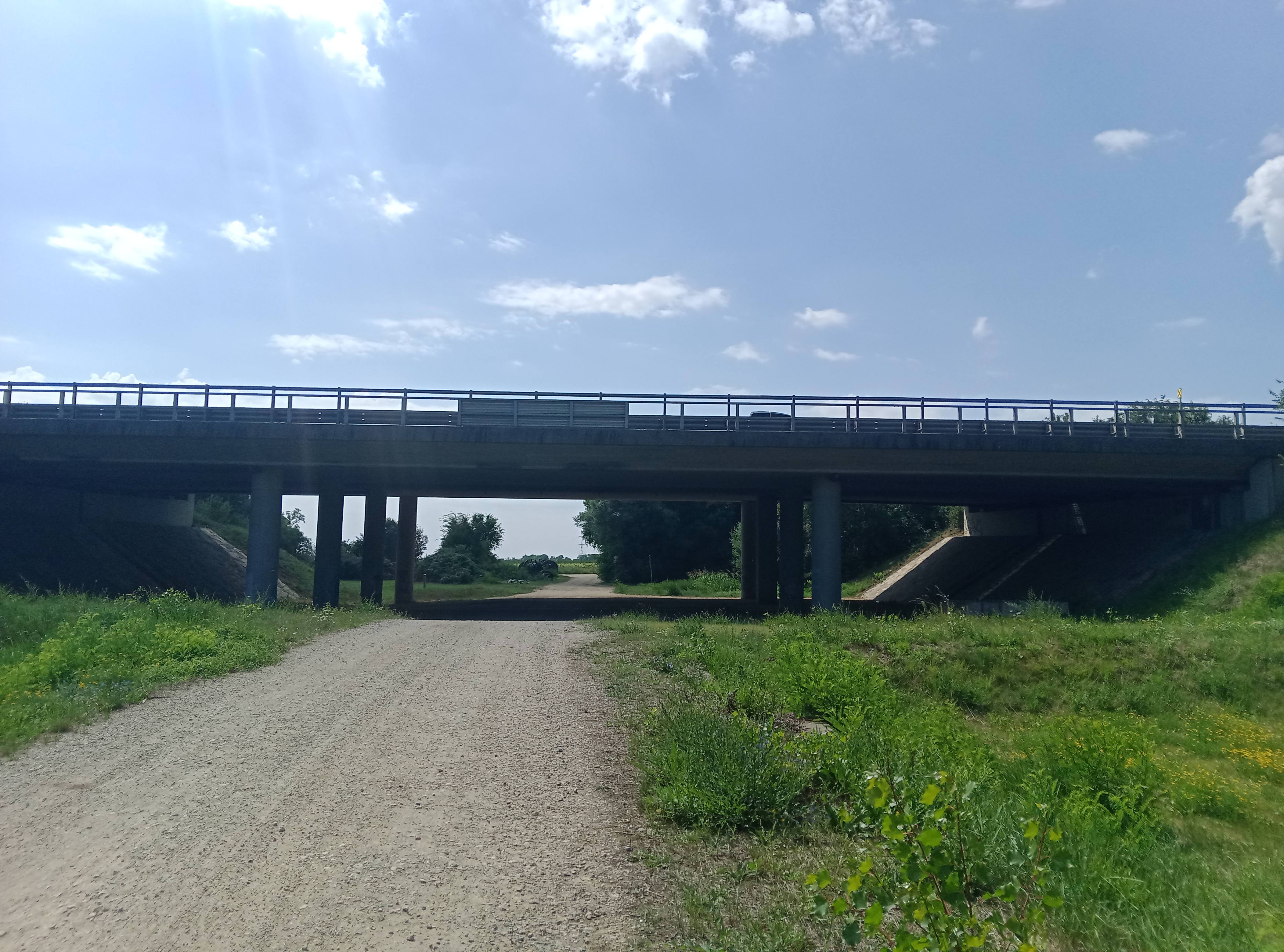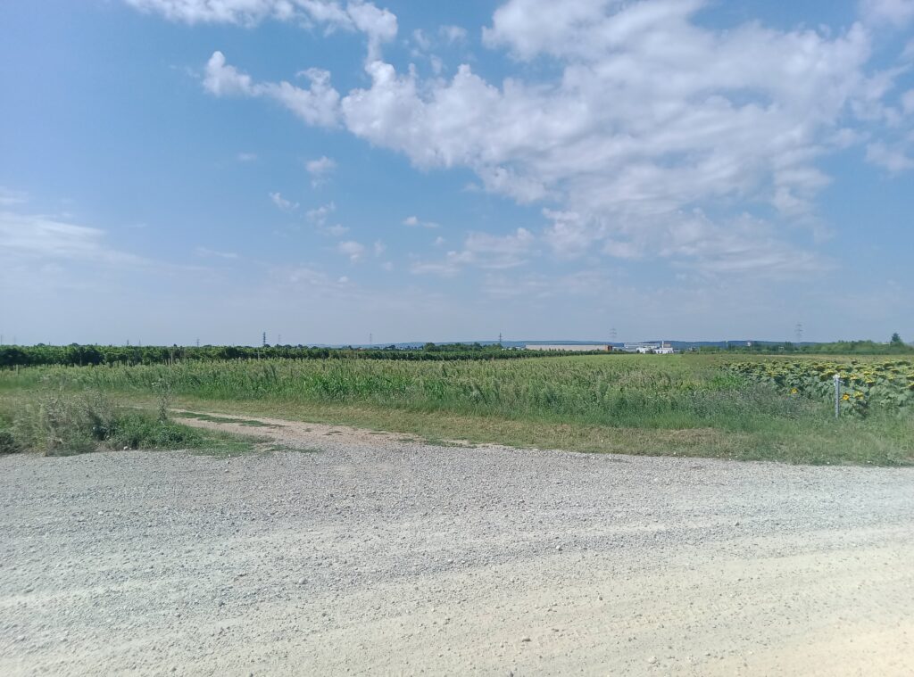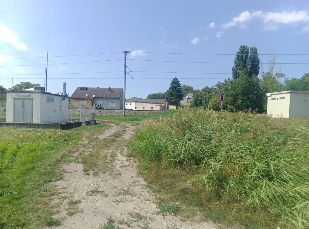 Los geht es da, wo gestern Ende war, am Bahnhof Parndorf-Ort, wo ich am Morgen von Wien aus ankomme. Von dort dann erst einmal ein Stück in die falsche Richtung, zum Gemeindeamt um einen Stempel einzusammeln. Dann zurück zum Bahnhof und kurz davor links zu einer Brücke. Über die drüber, dann direkt wieder links ins Gewerbegebiet. Ein Stück an der Straße entlang und dann zur Abwechslung erst an der zweiten Abzweigung nach rechts.