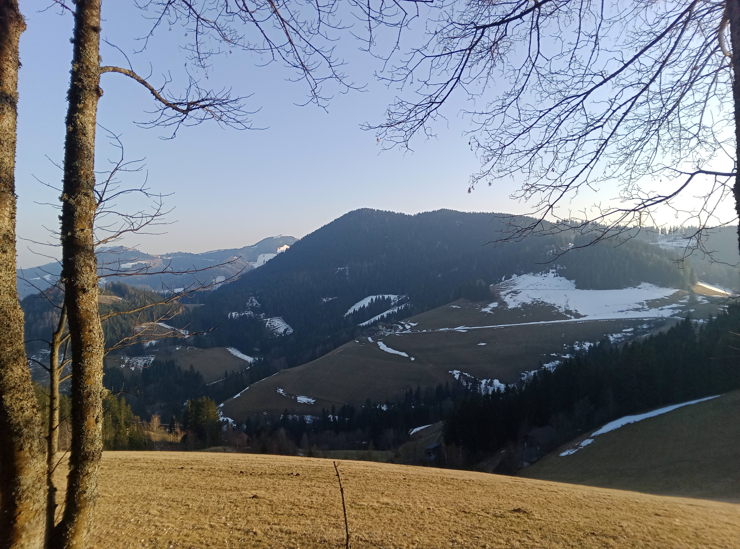 Heute war ich etwas unter Zeitdruck. Beim gestrigen Anruf beim Stroßeggwirt hieß es nämlich, dass zwischen 17:30 und 19:30 keiner da wäre, und wenn ich nicht ohne Essen mehrere Stunden draußen in der Kälte waren wollte, dann musste ich zusehen, dass ich früh genug ans Ziel kam.