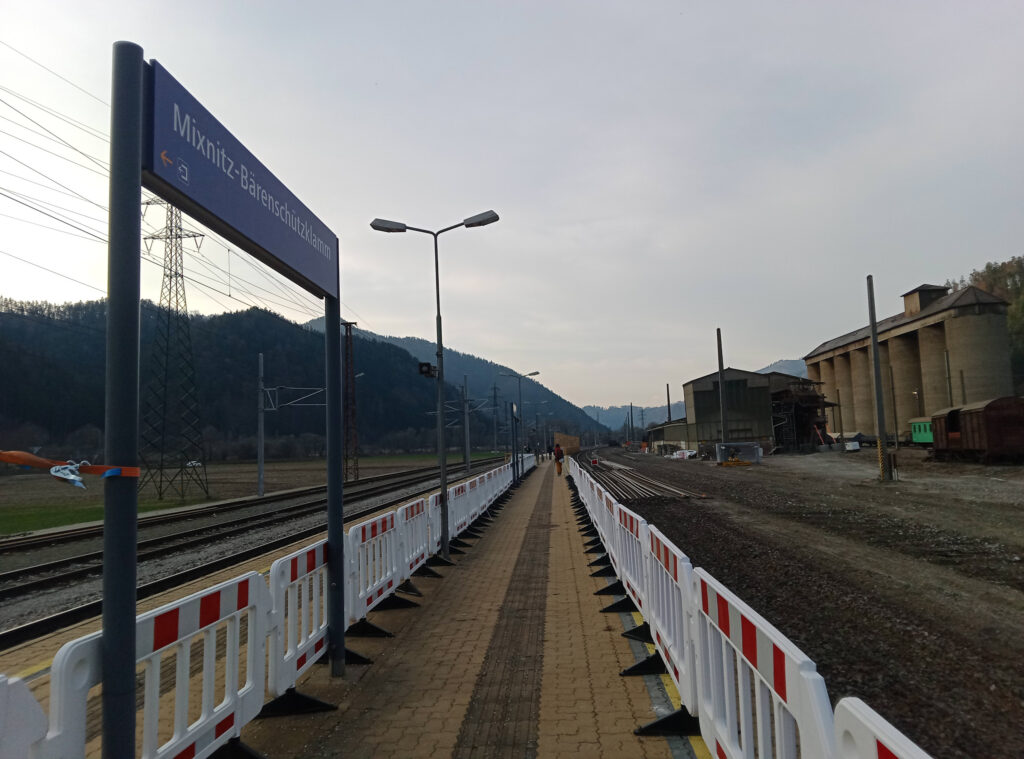 Der restliche Weg ist dann wenig spannend, entlang des Fahrwegs die letzten Meter hinab in den kleinen Ort Mixnitz und dort noch ein kleines Stück nach Norden zum aktuell stark an eine Baustelle erinnernden Bahnhof.